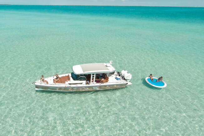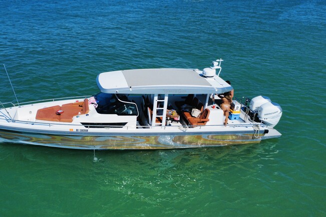 Enjoy on a private charter for up to 12 guests aboard our 37' Axopar Sun Top luxury performance yacht. With its powerful twin engines (700 HP), it’s the perfect combination of luxury and performance.