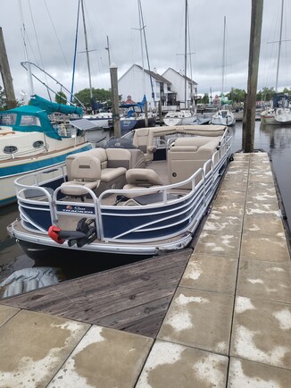 Rent this SUN TRACKER® FISHIN’ BARGE® 22 DLX for an unforgettable boating experience!