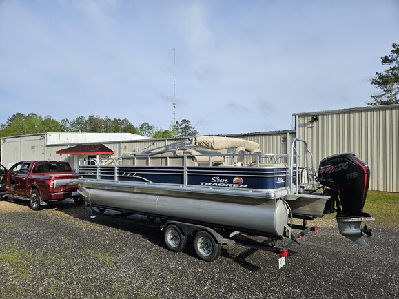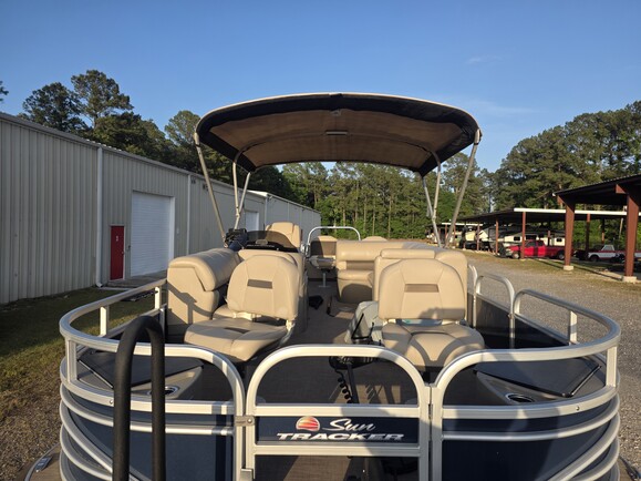 When it comes to fishing pontoons, this SUN TRACKER® FISHIN’ BARGE® 22 DLX is tough to beat. This spacious pontoon boat is perfect for a day out on the water with family and friends. It is powered by a 115HP Mercury outboard, providing smooth cruising and plenty of power.