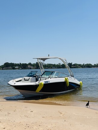 Experience a relaxed, fun-filled day on Lake Conroe aboard our family-friendly powerboat, perfectly equipped for tubing, swimming, and cruising. Clean, well-maintained, and easy to drive, this boat offers everything you need for a carefree outing: a ready-to-use tube, inflatable toys, a swim ladder, cooler with ice chest, and a selection of children’s life jackets. Bring your favorite playlist and enjoy the built-in stereo with Bluetooth and auxiliary input for seamless music while you ride the waves. An anchor is available for quiet stops and lakeside picnics, and the spacious deck makes it simple to move around or unwind between activities.